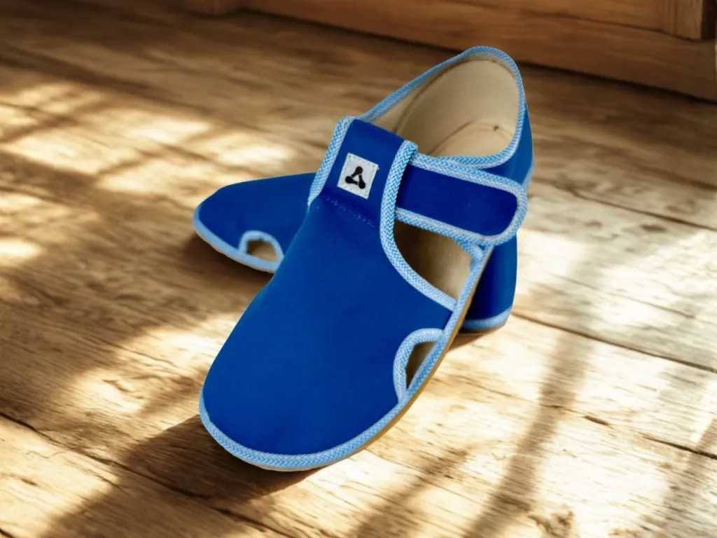 Byly vyvinuty ve spolupráci s fyzioterapeuty a lékaři, aby podporovaly přirozený vývoj dětské nohy a pomáhaly vytvářet zdravé pohybové návyky. Materiál: textil Barva: modrá Podrážka: 4 mm tenká, gumová, flexibilní, nezanechává šmouhy na podlaze
